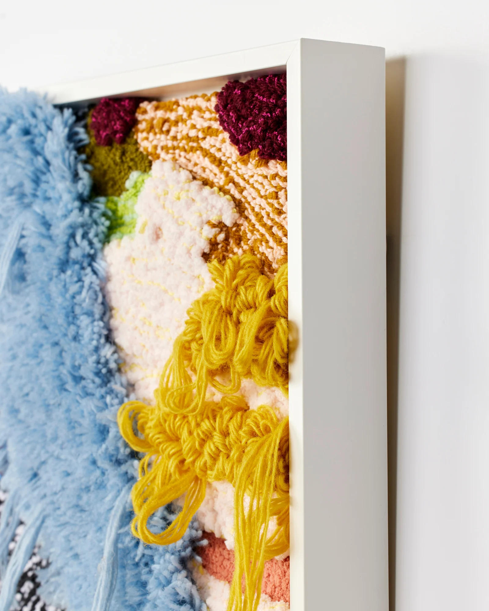 Dual Emotion / 2023 / mixed yarns / 12 7/8 in x 12 7/8 in x 2 in (measurement includes frame)$800 PURCHASE Slide 1 Slide 1 (current slide) Slide 2 Slide 2 (current slide)