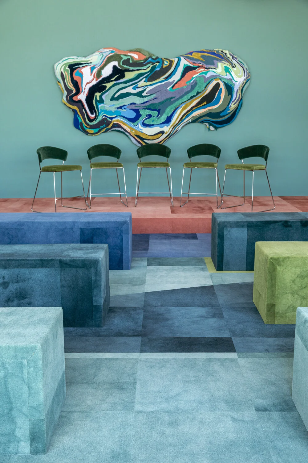 Set in motion / 2019 / mixed yarn, wood, foam / 10ft x 5 ft x 9 in deep / SCAD for Design Miami