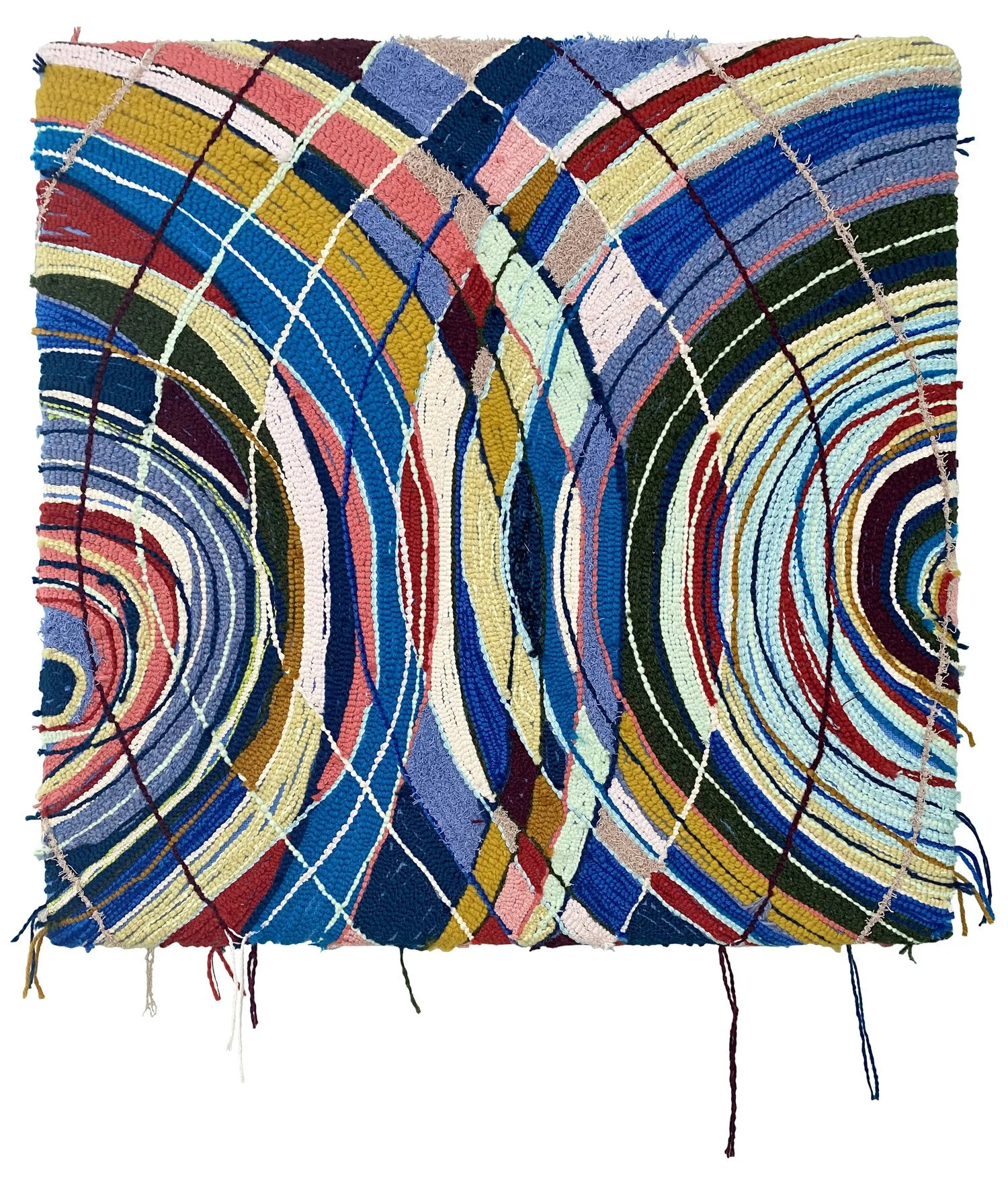 Forward 3 Wall Jan 1 Written By trish andersen Forward 3 / 2020 / mixed yarn / 24 in × 24 in / trish andersen